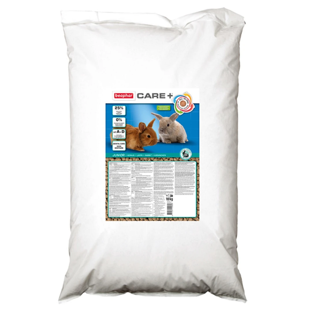 Care+ Konijn Junior is een zeer smaakvolle en uitgebalanceerde voeding . Het is ontwikkeld in samenwerking met dierenartsen en voedingsdeskundigen. Care+ is geëxtrudeerd, deze hittebehandeling maakt een betere vertering van eiwitten uit het voer mogelijk en maakt de brokjes extra krokant. De ingrediënten zijn afgestemd op de voedingsbehoefte en benaderen het natuurlijke voedingspatroon. Ieder brokje heeft dezelfde samenstelling (All-in-One), met als resultaat: geen selectief eetgedrag, dus geen restjes en geen tekort aan essentiële voedingsstoffen. De harde brokjes ondersteunen de natuurlijke slijtage van de tanden (Dental Function) en de grootte van de brokjes is specifiek afgestemd op jonge dieren. De brokjes bevatten verder de juiste hoeveelheden vitamine A en calcium voor een optimale groei en ontwikkeling. Met Vitamine E voor de lichaamscellen, het juiste ruwvezelgehalte en smakelijke kruiden. Met Care+ Konijn Junior heeft u absoluut het beste voor uw jonge konijn in handen. Ook geschikt voedsters tijdens dracht en spenen. • ieder brokje heeft dezelfde samenstelling • geen selectief eetgedrag • natuurlijke slijtage tanden • ook geschikt tijdens de dracht en spenen Vanaf 3 weken mag Care+ en hooi als aanvulling op de moedermelk gegeven worden, totdat ze gespeend zijn op een leeftijd van 6-10 weken. In de eerste 6 maanden mag een konijn onbeperkt van de brokjes eten, daarna ongeveer 35g per kg lichaamsgewicht.