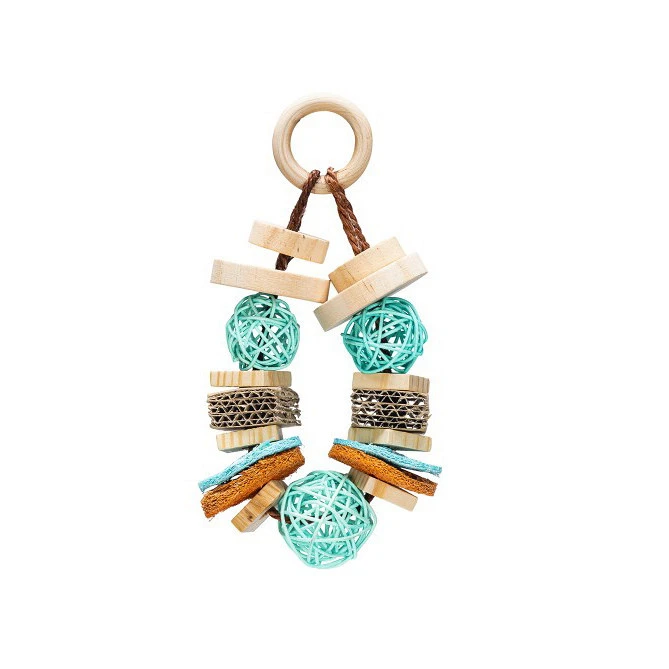 Jouw konijn zal knaagdierspeelgoed Olaf te gek vinden. Dit komt omdat dit konijnenspeelgoed beschikt over verschillende materialen. Zo beschikt Olaf over een houten ring, waarmee je het speeltje in bijvoorbeeld de konijnenkooi kan ophangen. Daarnaast zijn er diverse natuurlijke materialen aan het sisal touw gemaakt.