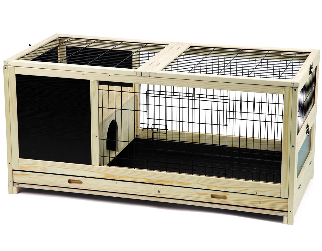 De kooi is voorzien van een lade, waardoor je de kooi eenvoudig schoon kunt maken. De konijnenkooi Jez heeft maar liefst 3 openingen, aan de boven-, de zij- en de voorkant. Hierdoor kan jouw konijn gemakkelijk in de kooi worden geplaatst of eruit worden gehaald.