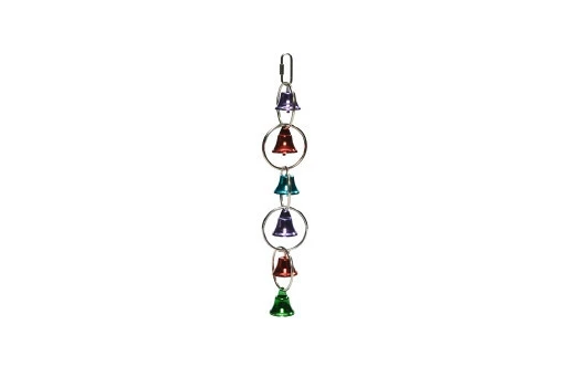 Een metalen vogelspeeltje bestaande uit 6 belletjes onder elkaar in diverse kleuren. Jouw vogel zal je dankbaar zijn voor deze leuke aanwinst in de vogelkooi. Lengte: 31 cm.