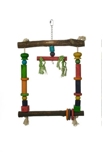 Met deze Beeztees Papegaaienschommel van hout creëer je een extra zitgelegenheid in de papegaaienkooi. Omdat de schommel in het midden een bevestigingshaak heeft, zal deze gaan bewegen zodra jouw papegaai erop plaatsneemt. De toevoeging van houten kralen en touwen, zorgen voor extra speelplezier!