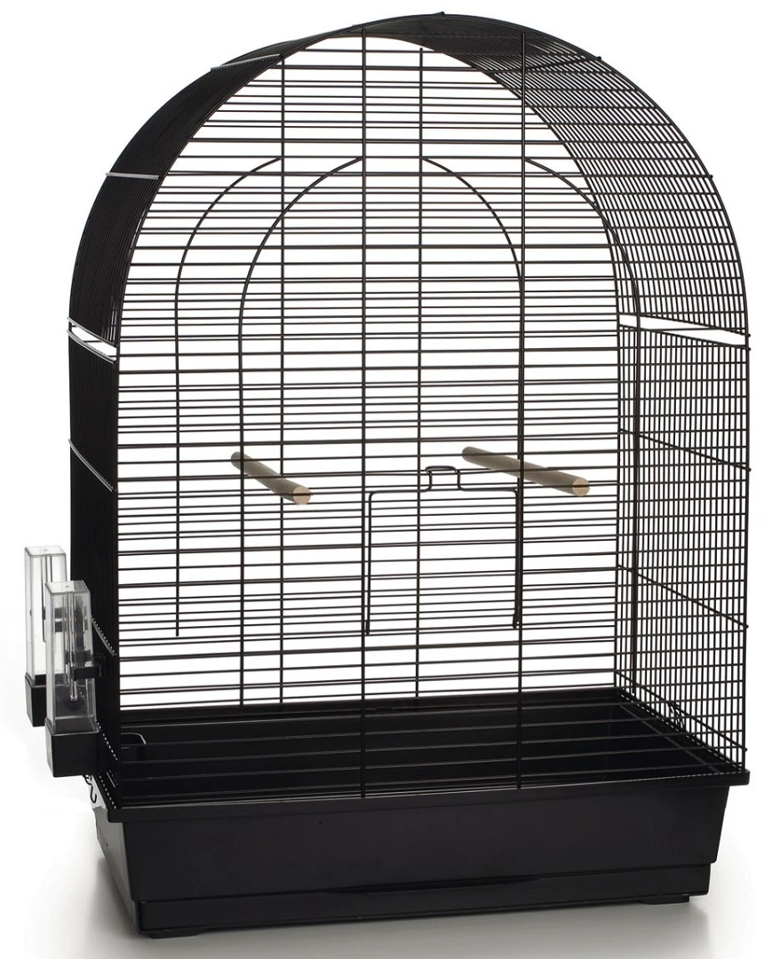 Halfronde vogelkooi geschikt voor diverse soorten vogels. Makkelijk schoon te maken, inclusief zitstokjes en drink- en voederbakjes.