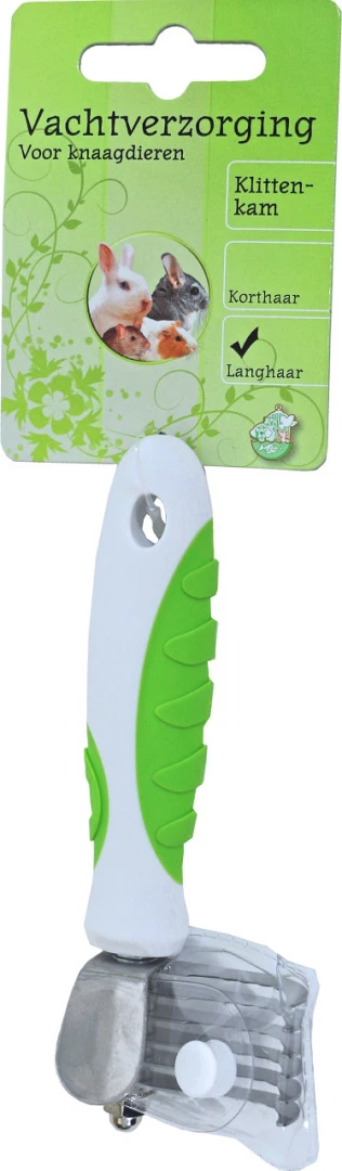 Deze Klittenkam verzorgt de vacht door middel van het verwijderen van klitten. Deze klittenkam is voor zowel links- als rechtshandige gebruikers. Voor linkshandig gebruik dien je het moertje los te draaien en de mesjes en duimgreep in de tegenovergestelde richting weer te monteren.