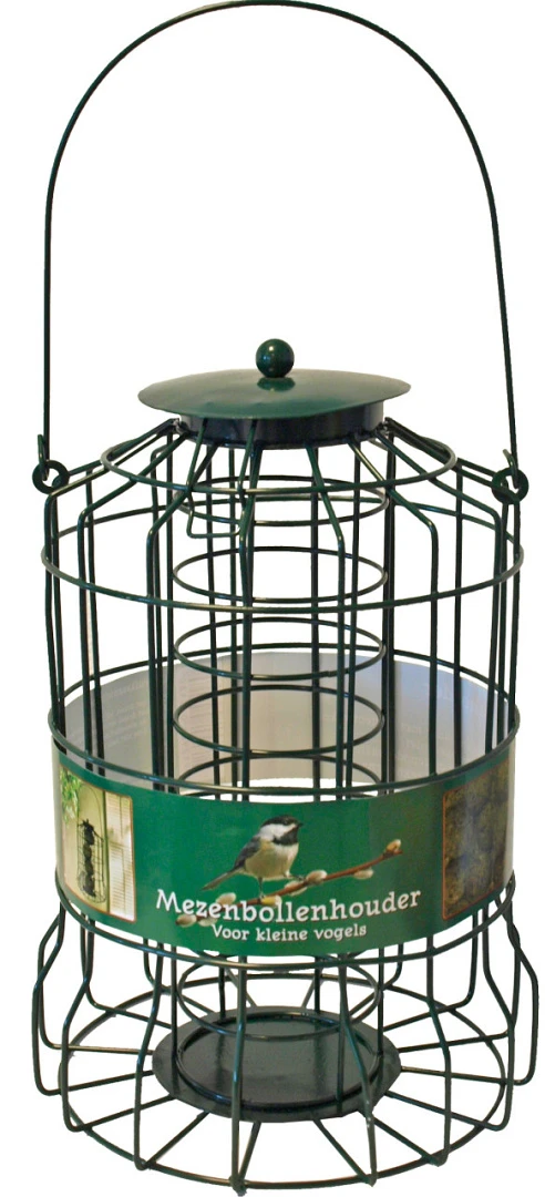 De mezenbolhouder voor kleine vogels is een voersilo voor buitenvogels waar mezenbollen in kunnen.