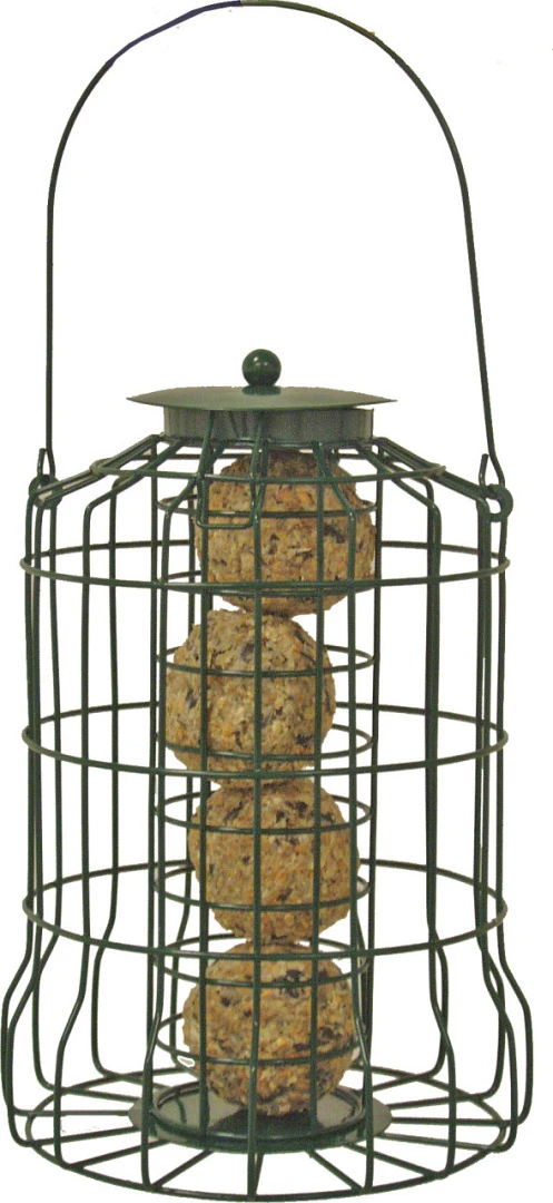De voersilo heeft een beschermende draadbol om zich heen en biedt daarmee een veilige voerplek aan voor de kleine buitenvogels. Grote vogels kunnen er niet bij door de kleine mazen. De metalen mezenbolhouder is gemakkelijk schoon te maken en het ergonomische design zorgt voor een natuurlijk houding tijdens het eten.