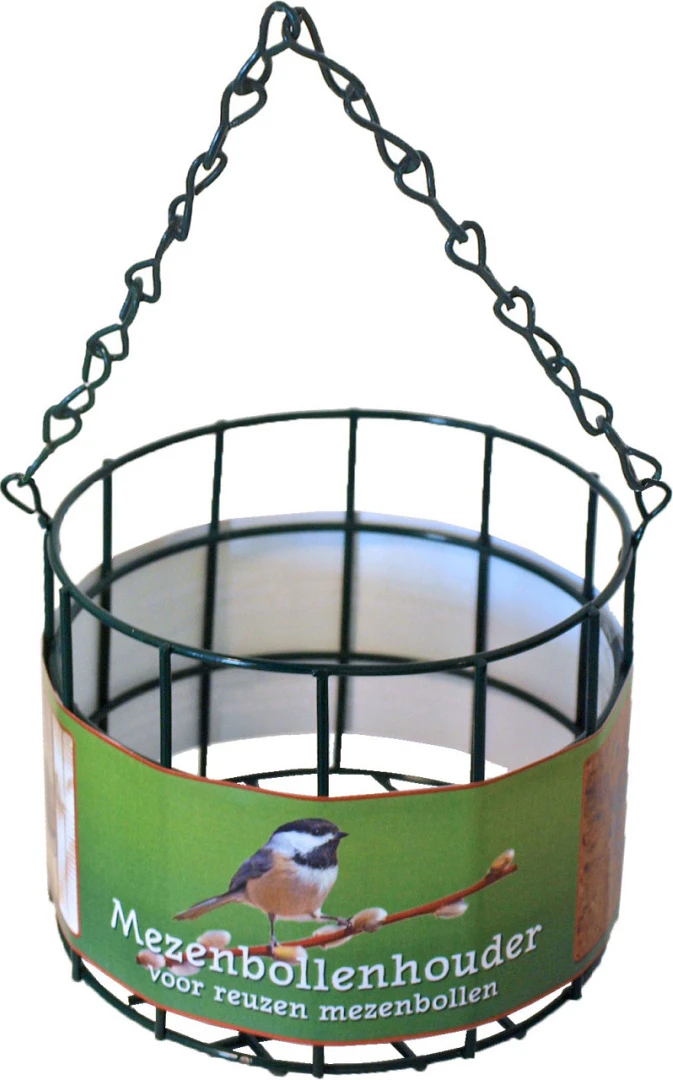 De reuzen mezenbolhouder van metaal is een ideale plek voor de vogels om van hun voedsel te kunnen genieten. De metalen reuzenmezenbolhouder is door de metalen ketting makkelijk op te hangen. Het is een leuk schouwspel als de mussen en de mezen lekker zitten te eten!
