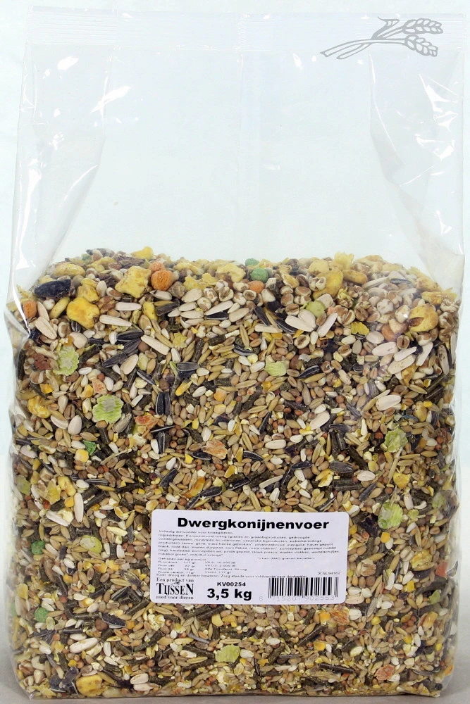 Dwergkonijnenvoer is een fijne samenstelling voor konijnen. De samenstelling is een aanvullende voeding.