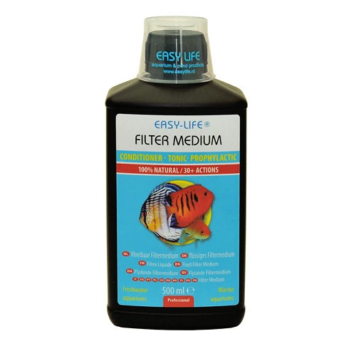 Easy-Life Filter Medium is het meest veelzijdige waterbehandelingsproduct op de markt. Het kan gebruikt worden om water kristalhelder te maken. Het wordt toegepast als waterbereider, onderhoudsproduct, stimulator (o.a. van plantengroei) en profylaxe (voorkoming van infecties). Verder is het een effectieve oplosser voor een breed scala aan problemen in zoet- en zeewater. Het is bovendien 100% natuurlijk en zeer veilig in gebruik.