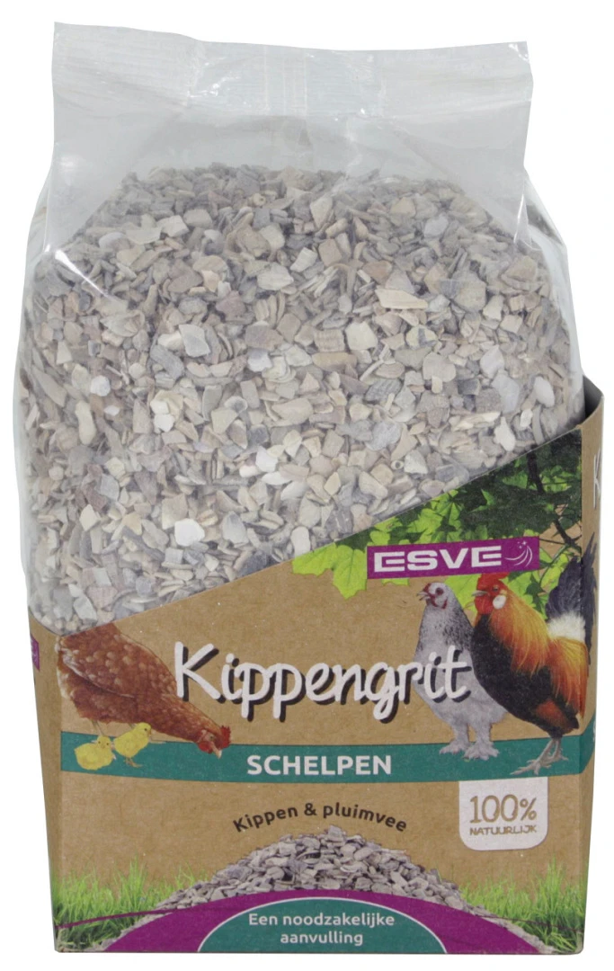 ESVE Kippengrit is een essentiëel supplement voor de mineralenhuishouding van een kip. Vooral voor leggende kippen is het extra belangrijk om de kalk in het lichaam aan te vullen, maar ook tijdens de rui een onmisbaar supplement.