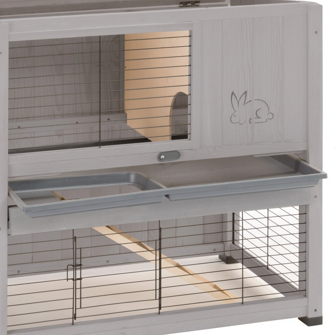 Het Ferplast Ranch konijnenverblijf is gemaakt van Noors dennenhout en heeft een uitschuifbare lade voor eenvoudig schoonmaken.