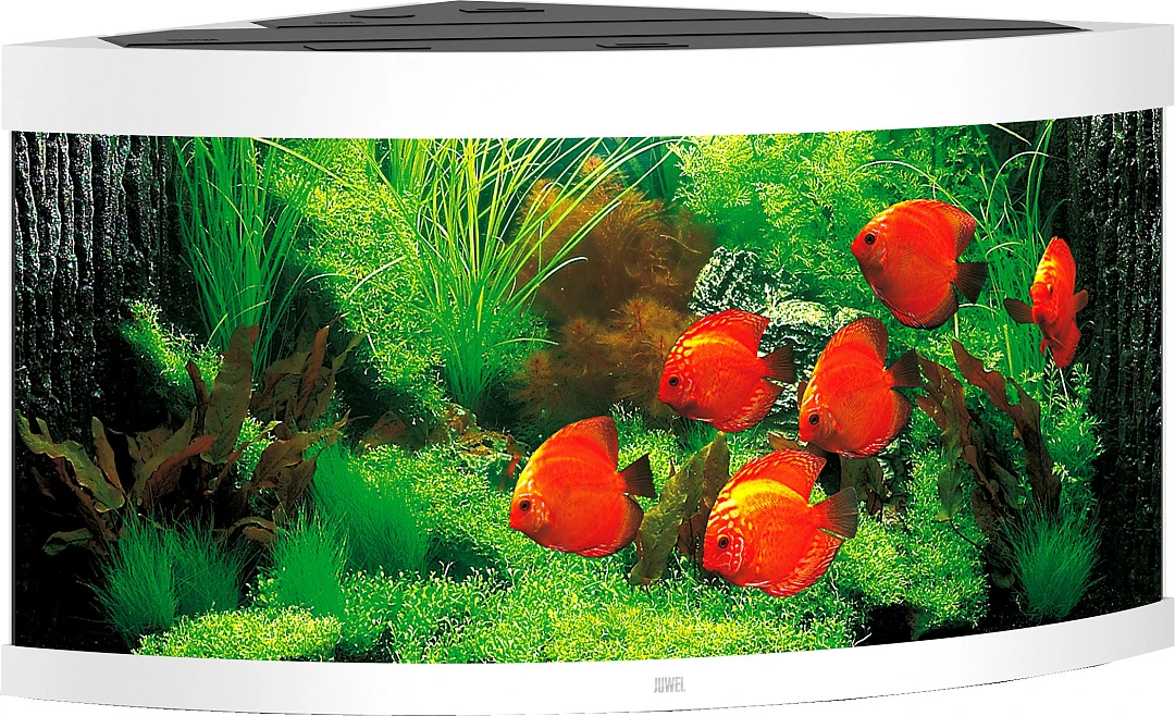 Het TRIGON 350-aquarium schittert in elke hoek met zijn unieke diepte van 87 cm en zijn gebogen voorruit en wordt optimaal verlicht door vier tl-buizen.