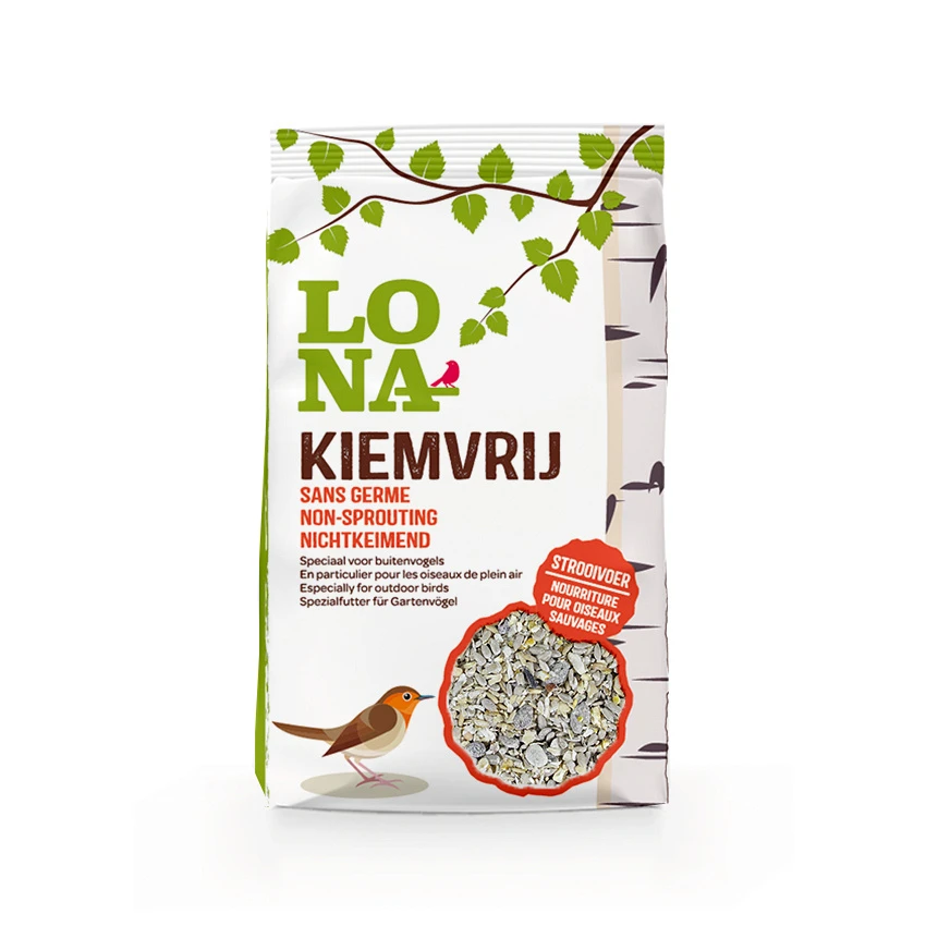 Lona kiemvrij tuinvogelvoer houdt je tuin schoon. Voor koolmees, pimpelmees, roodborstje, merel, winterkoning, zanglijster, huismus en soortgenoten.