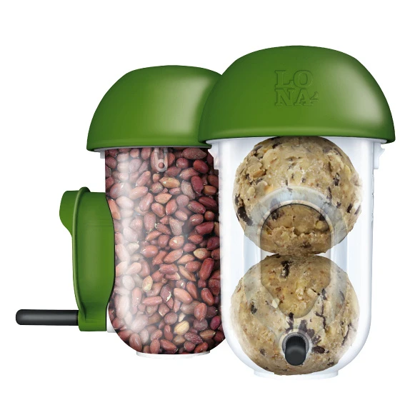 Lona D2 voersilo combi is een voersilo én een mezenbollensilo voor het voeren van tuinvogels. Eenvoudig te bevestigen aan een regenpijp, boomstam, tak, schutting, muur of pergola.