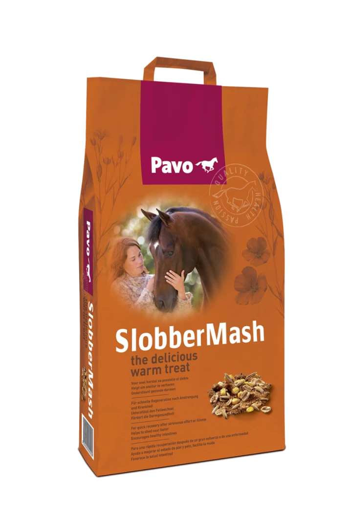 Pavo SlobberMash is een compleet krachtvoer dat je eenvoudig en snel met warm water klaarmaakt. Door het hoge aandeel zuiver lijnzaad krijgt je paard een schitterende glans. Het ondersteunt een goede darmwerking en gezonde vertering.