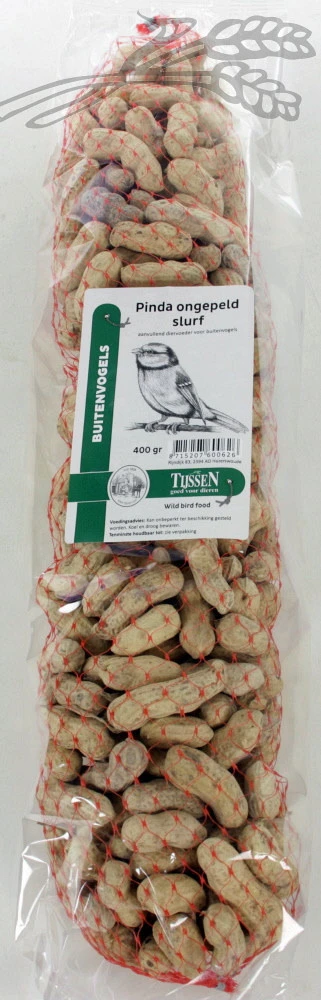 Slurf Pinda Ongepeld is een welkome afwisseling op het menu van veel vogels. Als je de slurf in je tuin hangt, kun je de buitenvogels goed bekijken wanneer zij hiervan eten.