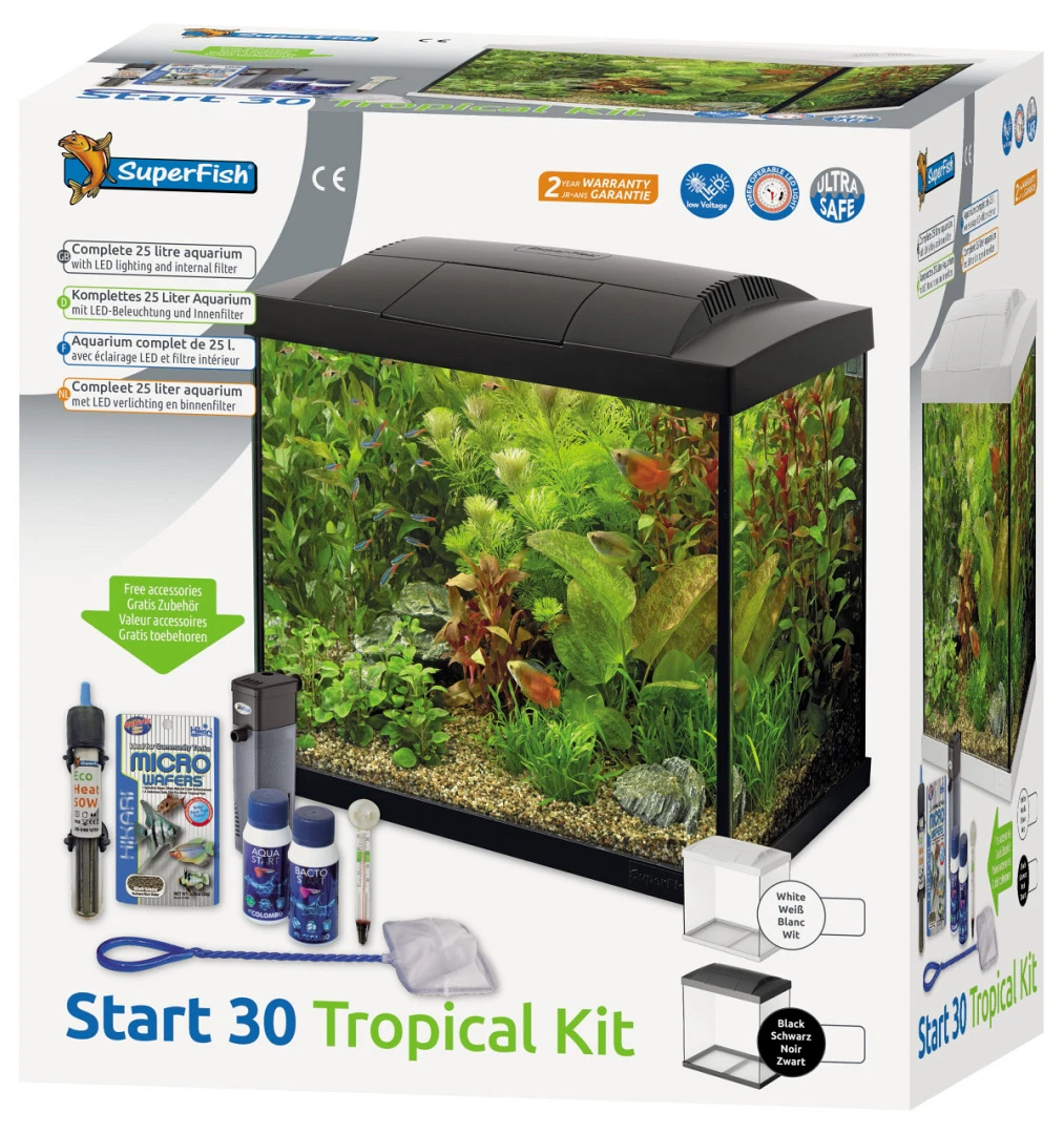 De SuperFish Start 30 Tropical zwart is een complete starterkit met energiezuinige ledverlichting, binnenfilter en handige accessoires om de aquariumhobby te starten.
