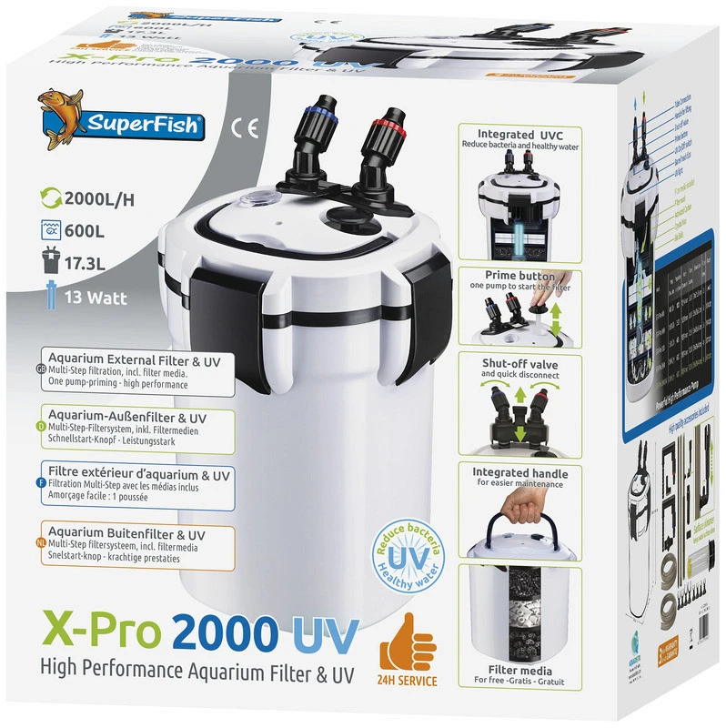 Het SuperFish X-Pro 2000 UV aquarium buitenfilter zorgt voor een optimale biologische filtratie van het aquarium. Dit is een krachtig filter met Multi-Step filtratie voor glashelder en gezond water.