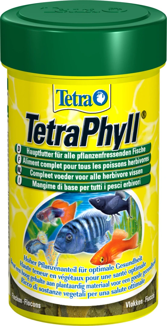 Tetra Phyll is een compleet vlokkenvoeder voor alle plantenetende siervissen en bevat essentile vezelrijke voedingsstoffen. Bevordert vitaliteit, groei en weerstandsvermogen.