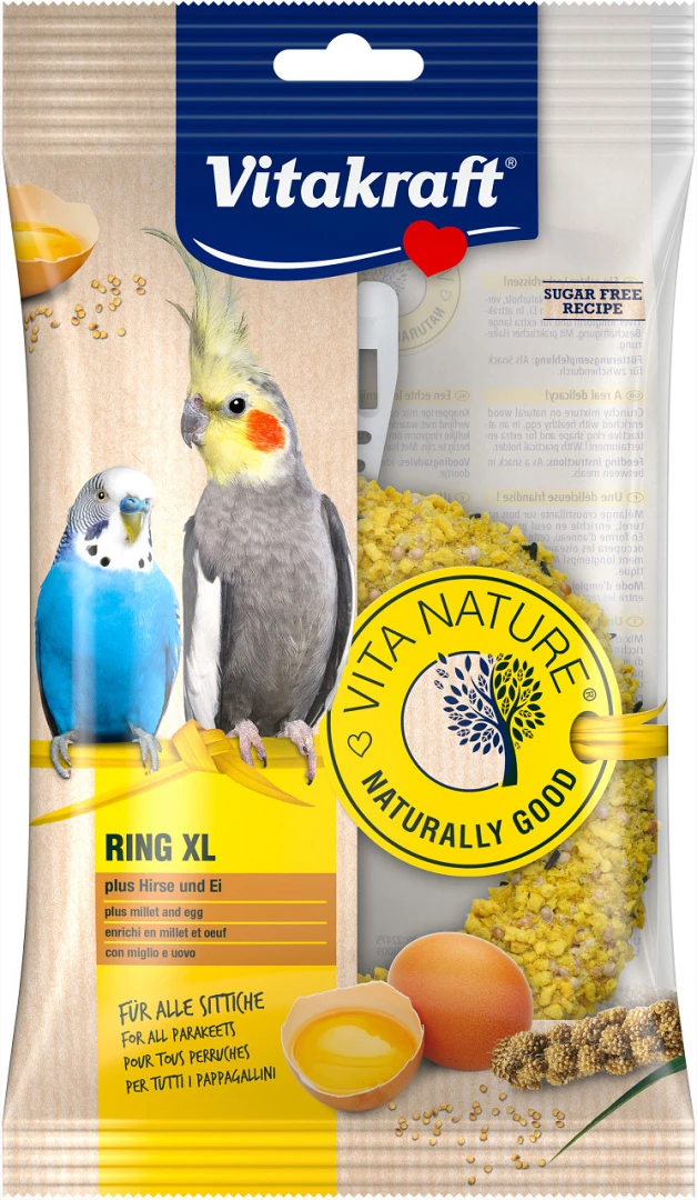 De Vita Nature Ring XL is zorgvuldig bereid voor jouw vogel en bevat geen toegevoegde suikers, kunstmatige kleurstoffen en smaakversterkers.